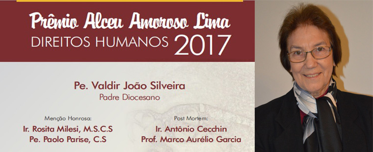La Hermana Rosita Milesi recibió una mención especial en Brasil por su Premio Alceu Amoroso Lima por los Derechos Humanos. Coordinadora del Ministerio de Refugiados de la CNBB (Conferencia Nacional de los Obispos de Brasil) es abogada y durante muchos años ha sido responsable de la SCAI – Oficina de Cooperación Apostólica Internacional, uno de […]